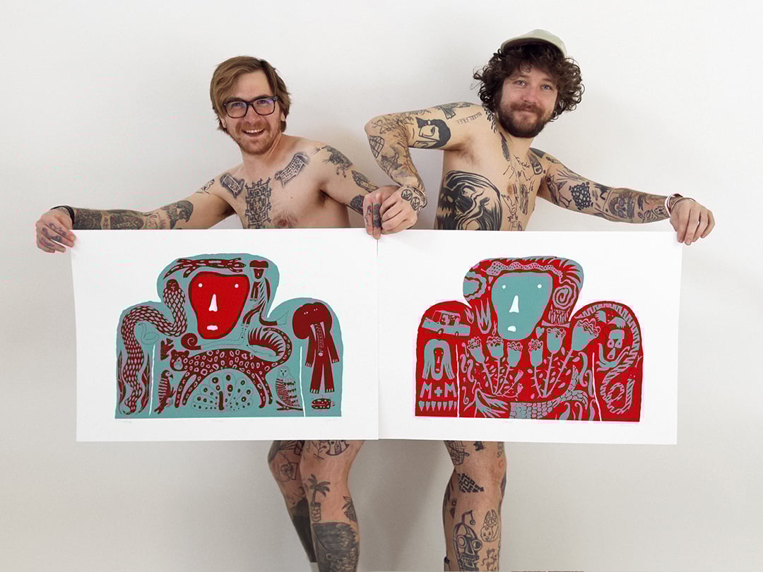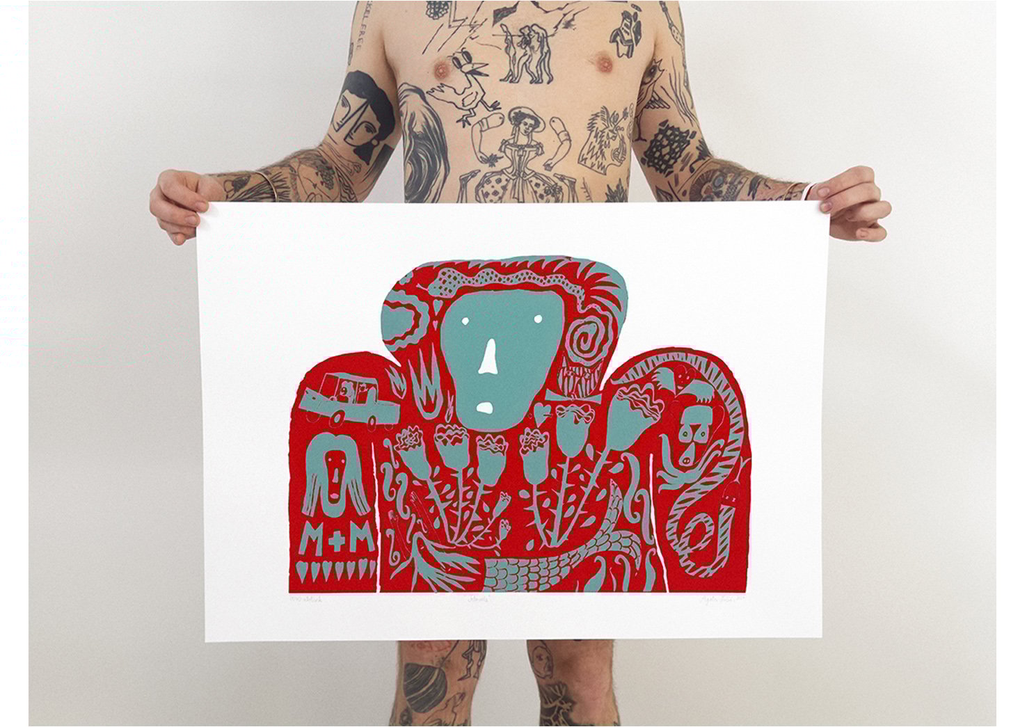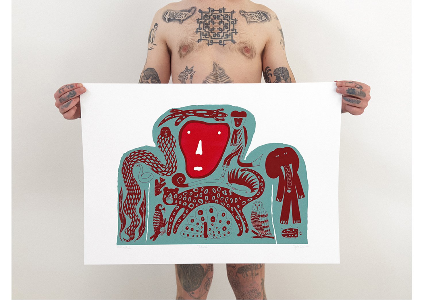 2 colors / 2 versions (turquoise monkey + red tattoos / red monkey + turquoise tattoos)